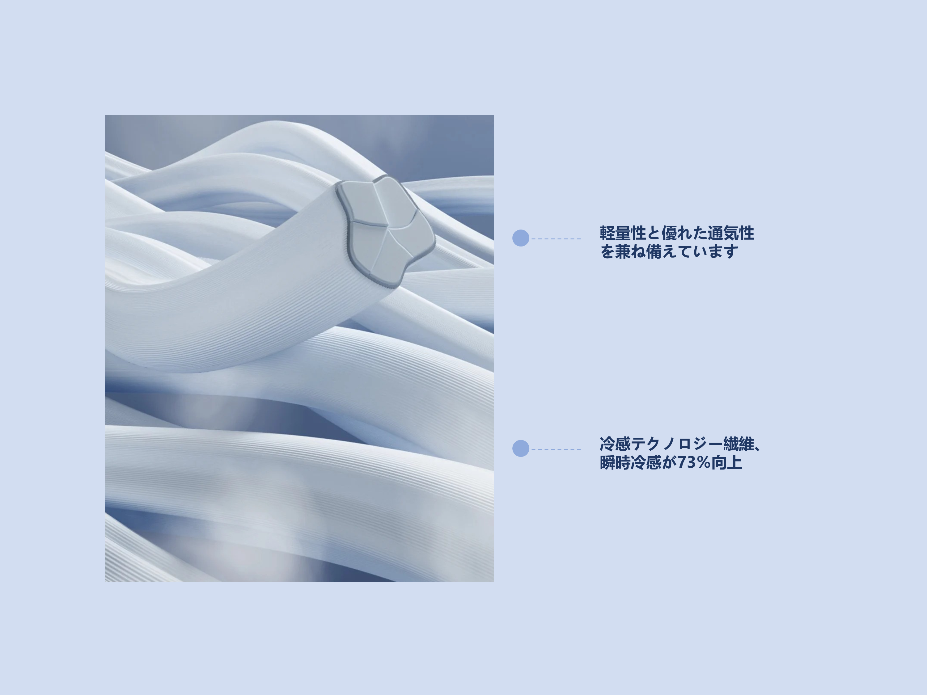 AirFlowサンドイッチ通気システム:内外層には接触冷感のナイロン生地(ナイロン83%+スパンデックス17%)を使用し、中間層には特殊な通気芯材を挿入。「サンドイッチ」構造の風道を形成します。