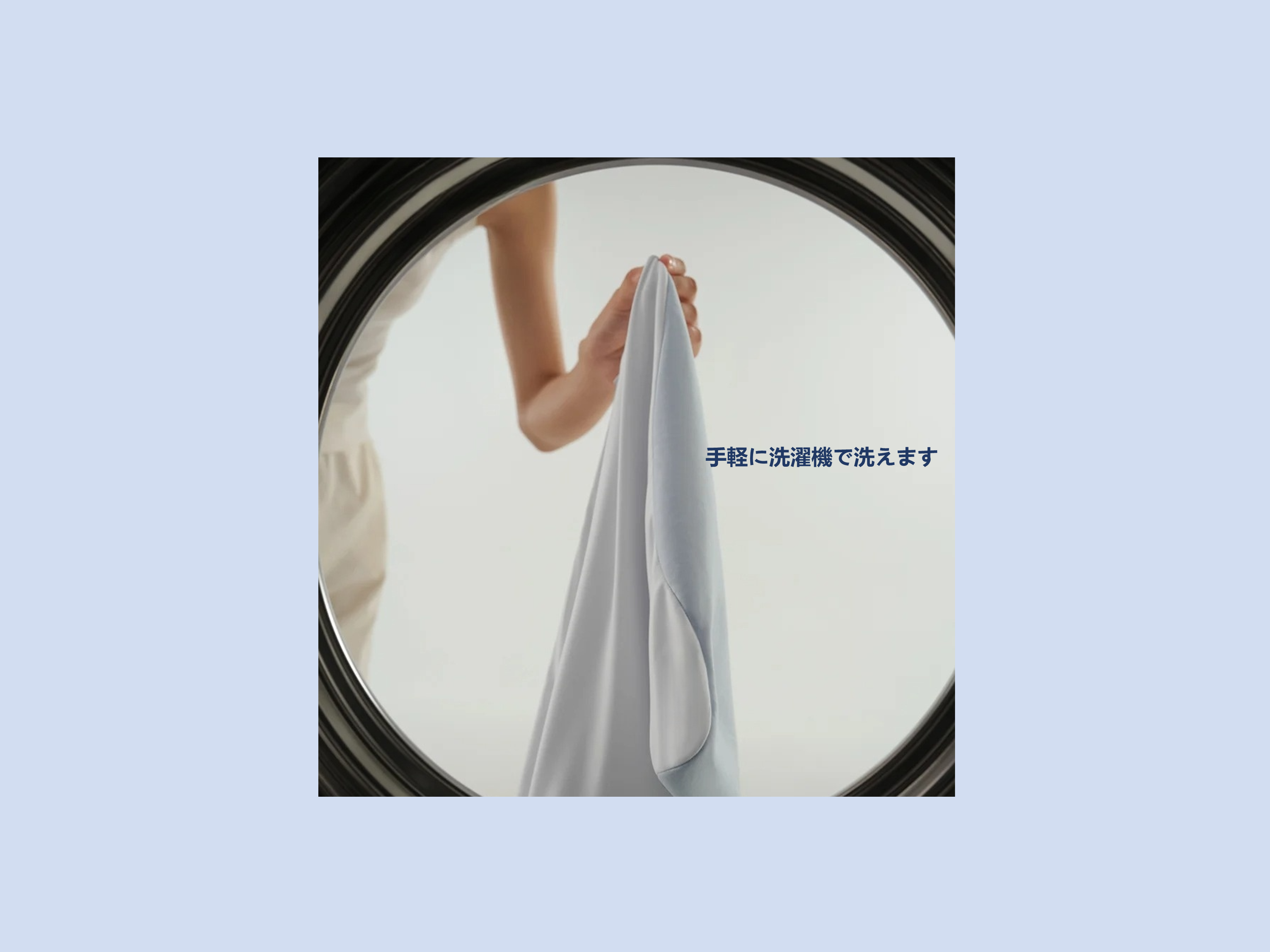 洗濯後は、形を整えて吊り干ししてください。アイロン掛けはおすすめしません。