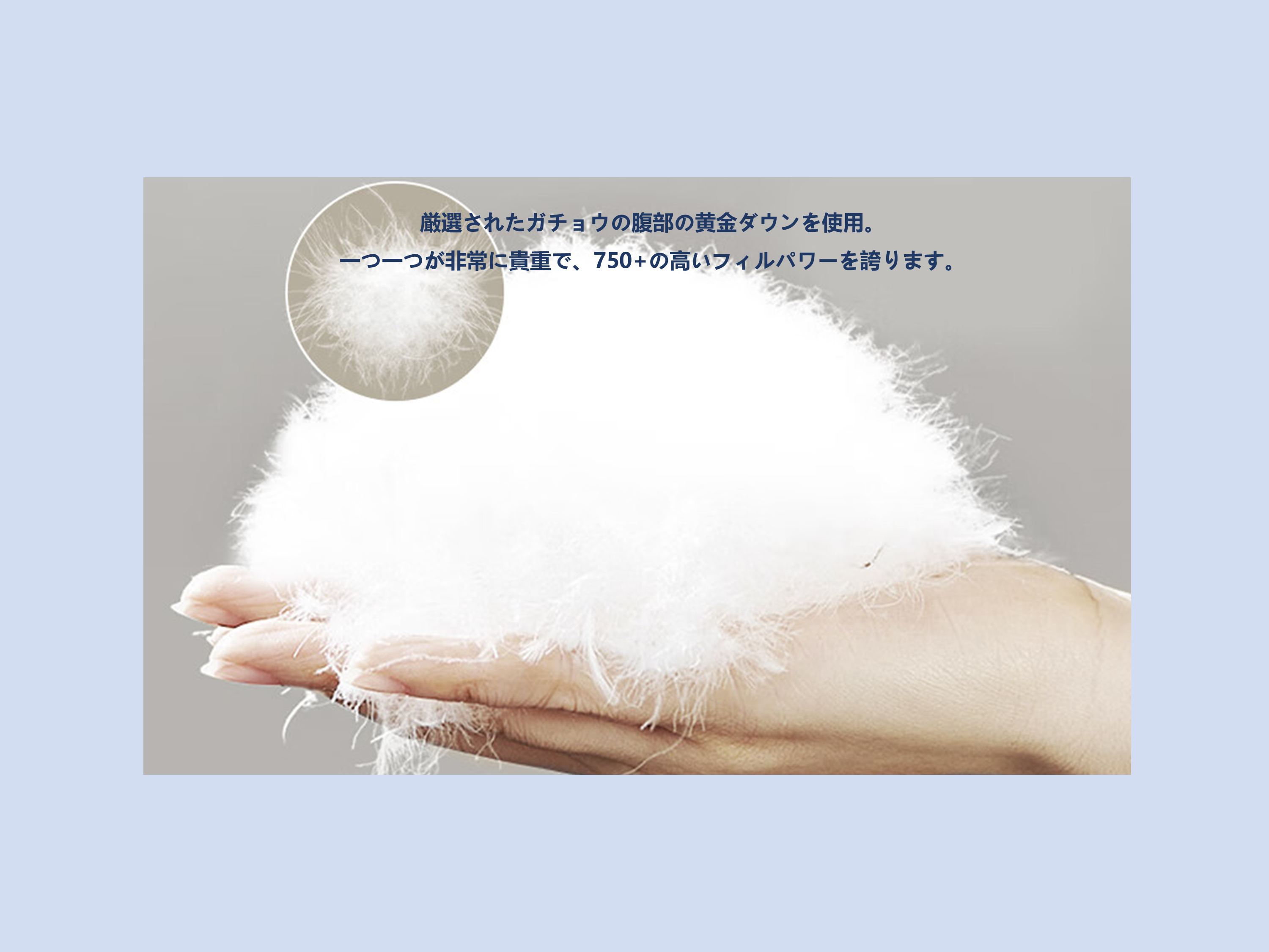 - 下層:ホワイトグースダウン100%(ダウン率90%)