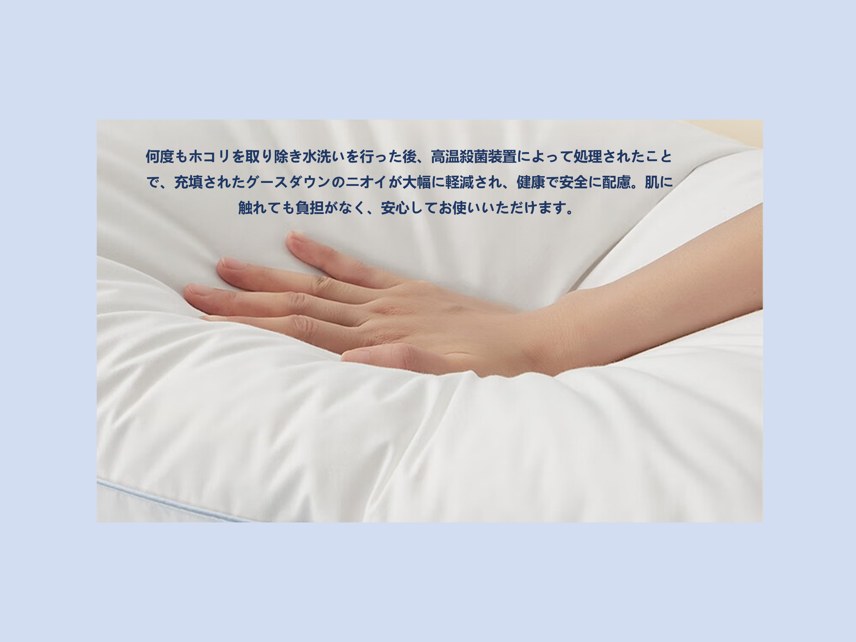 28工程のディープクリーンプロセス: ダウンは25℃の恒温水で8回洗浄、清潔度は国家基準の3倍を超え、スイスのSanitized®抗菌技術を採用。