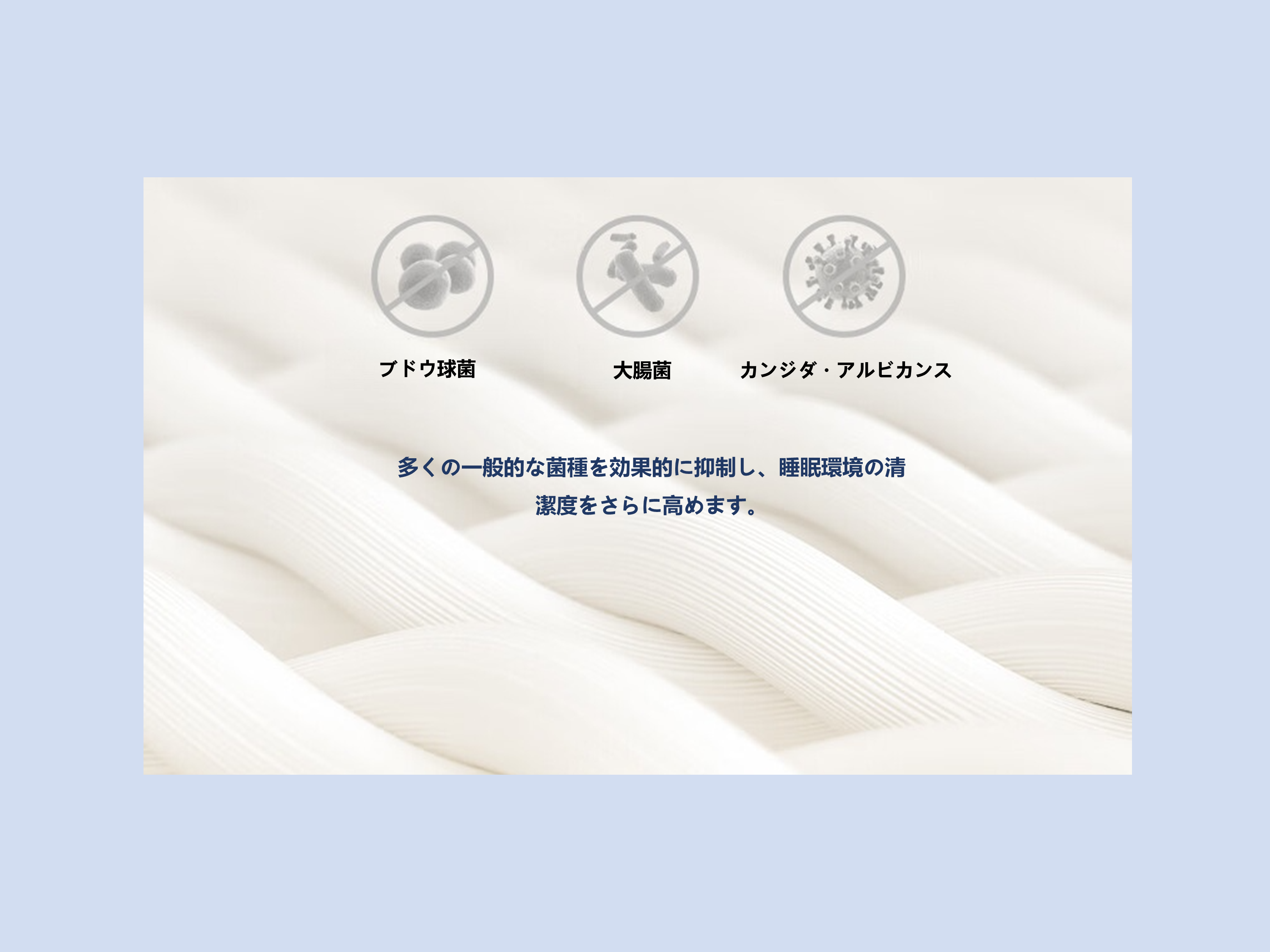 物理的ダニブロック構造:10μmの極細繊維で高密度に織り上げ、ダニの侵入をしっかり遮断。